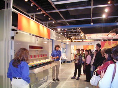 | 在美國硅谷,代表們參觀英特爾公司(intel)并聽取工作人員介紹 | 在硅谷參觀完Google(谷歌)公司后,哈爾濱中央紅股份公司總裁 欒芳和副總裁兼網(wǎng)絡公司總經(jīng)理孫毅穎(右)合影 |